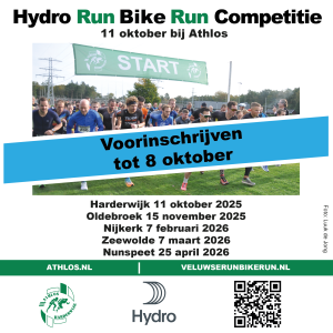 Op zaterdag 11 oktober 2025 organiseert Atletiek/Triatlon vereniging Athlos weer een Run Bike Run wedstrijd die onderdeel uitmaakt van de Veluwse Run Bike Run competitie.